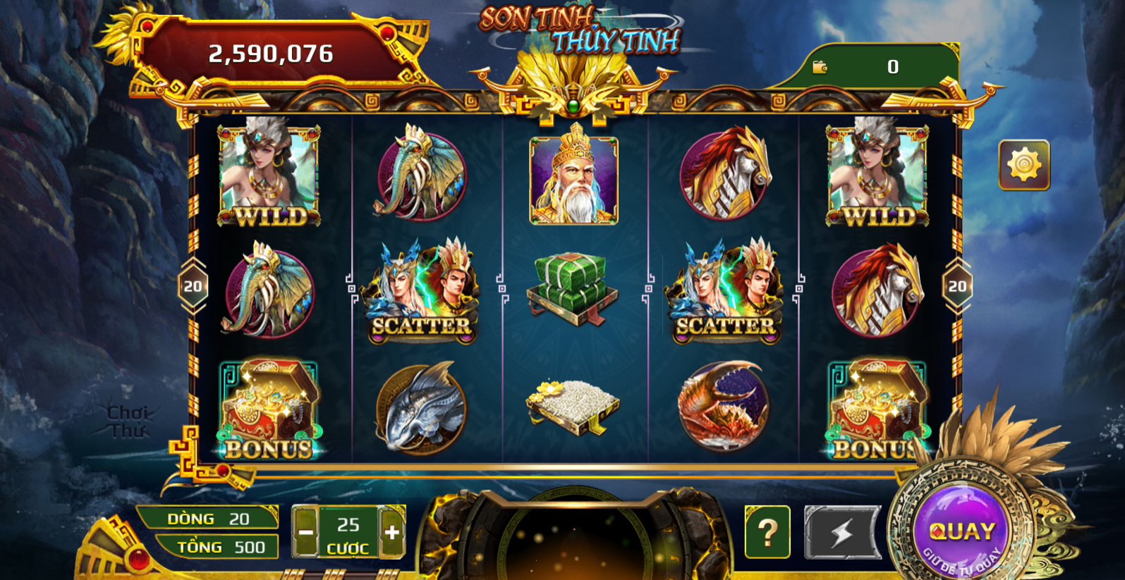 Sơn Tinh Thuỷ Tinh tái hiện cuộc chiến huyền thoại giữa hai vị thần trong văn hóa Việt Nam. Game có đồ họa đẹp mắt với các hiệu ứng núi lửa, sóng thần ấn tượng, tạo nên không khí kịch tính cho mỗi vòng quay.